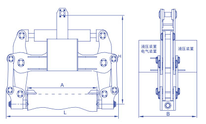 由吊耳、梁體、鉗腿、油缸、液壓控制系統、電氣及電氣控制系統、電纜卷筒等部分組成。