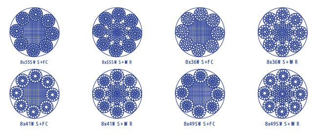 繩結構:8x55SWS+FC 8x55SWS+IWR 8×36WS+FC 8×36WS+IWR 8×41WS+FC 8×41WS+IWR 8×49SWS+FC 8×49SWS+IWR