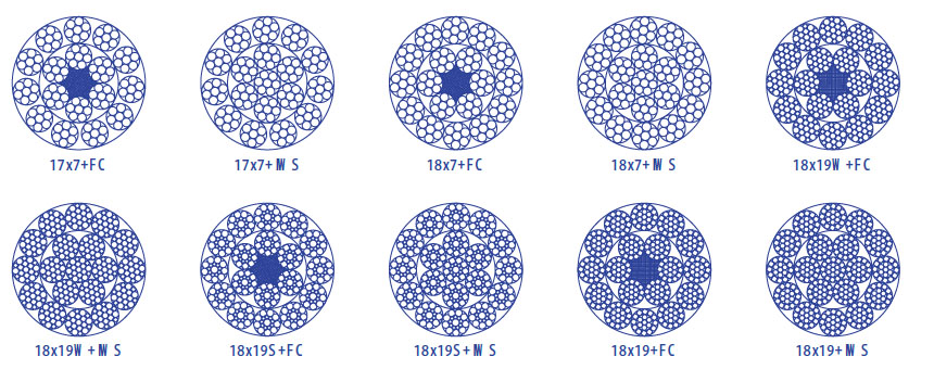 繩結(jié)構(gòu):17X7+FC 17X7+IWS 18X7+FC 18X7+IWS 18X19W+FC 18X19W+IWS 18X19S+FC 18X19S+IWS 18X19+FC 18X19+IWS