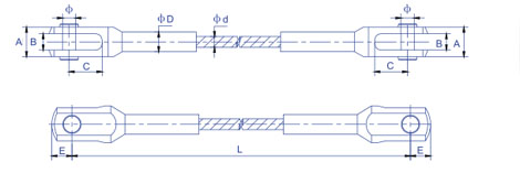 | 產品型號 | 鋼絲繩直徑d (mm) | A (mm) | B (mm) | C (mm) | D (mm) | E (mm) | 孔徑 Φ (mm) |